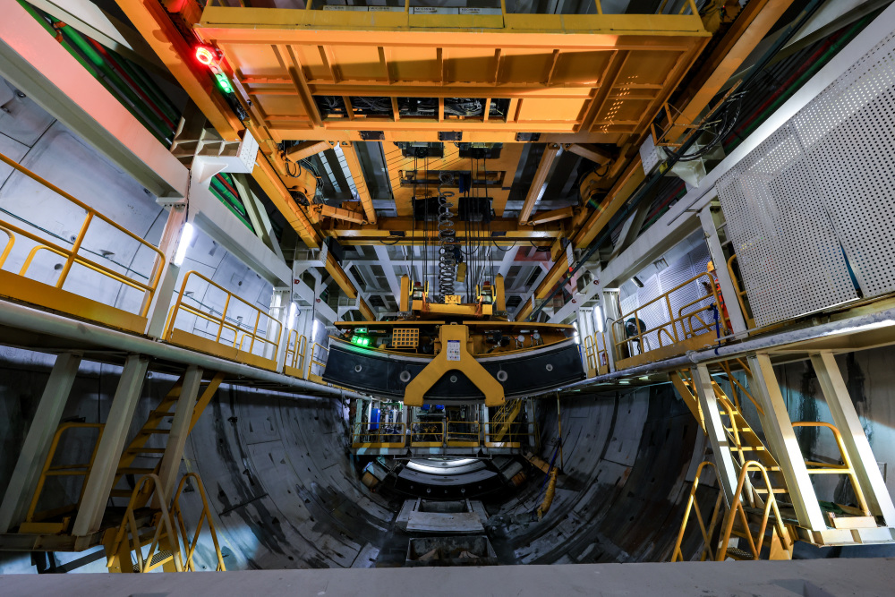1月6日,“深江1号”盾构机在珠江入海口海平面下掘进。新华社记者 毛思倩 摄