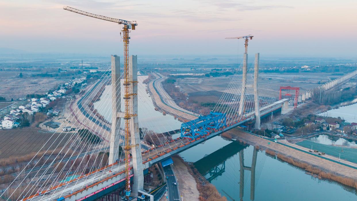 1月8日晚,新建上海至南京至合肥高速铁路(以下简称沪宁合高铁)控制性工程——南京特大桥跨滁河斜拉桥顺利合龙,标志着该斜拉桥正式转入桥面系施工阶段。作为国家“八纵八横”高速铁路网沿江通道的重要组成部分,沪宁合高铁建成后,将优化沿长江地区铁路网布局,助力长三角一体化高质量发展。