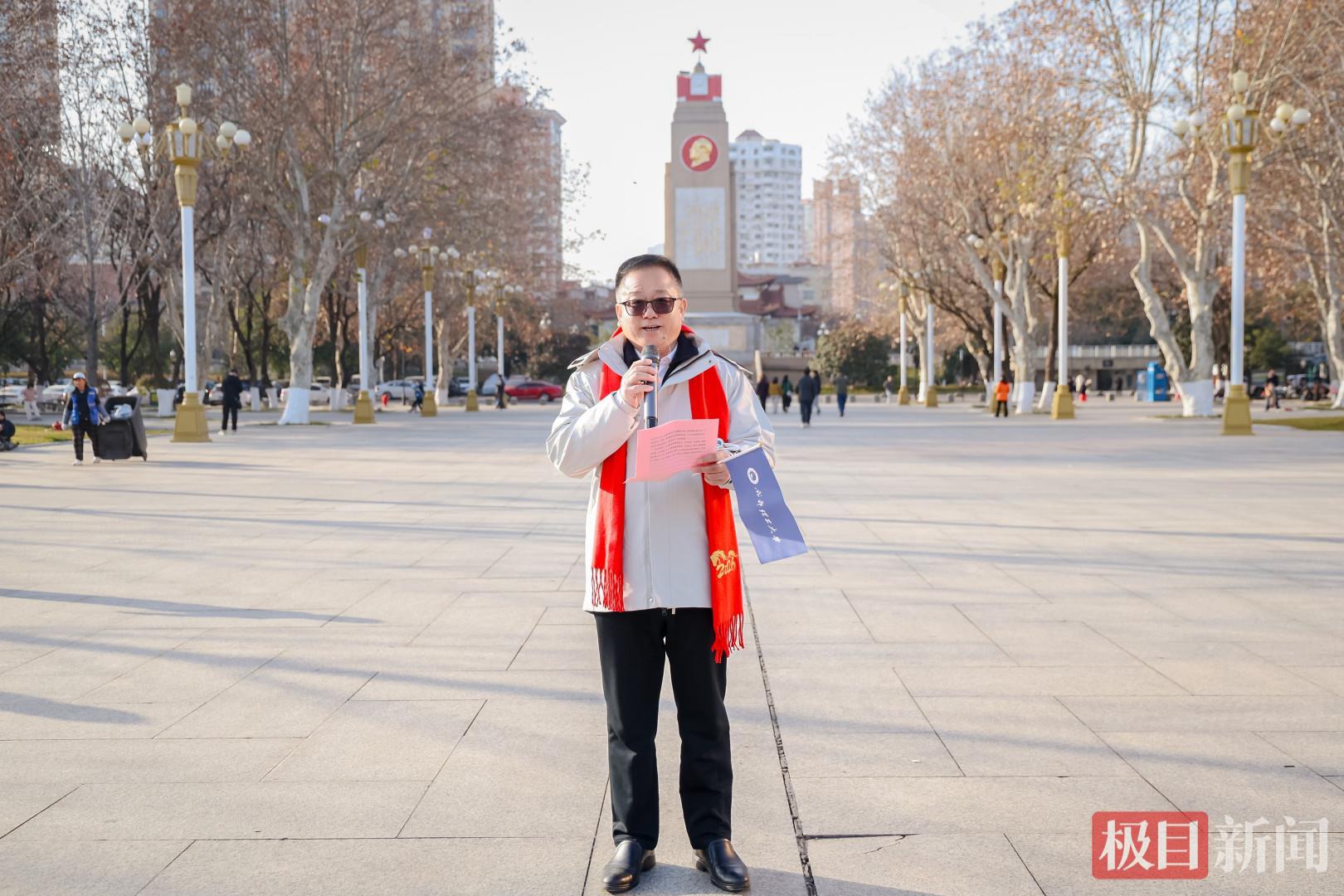 作为湖北校友会会长,84级地球物理专业校友张建清站在队伍前排,眼神坚定。“这面校旗跨越千山万水,将巴山蜀水的坚韧与荆楚大地的开拓精神紧密相连,带来了母校的牵挂,也凝聚着成理人的初心。”他在发言中动情地说,七十年来,母校精神激励着一代代理工人在荆楚大地扎根奋斗,从矿产勘探到灾害防治,从水利水电到生态环保,都有校友们攻坚克难的身影。