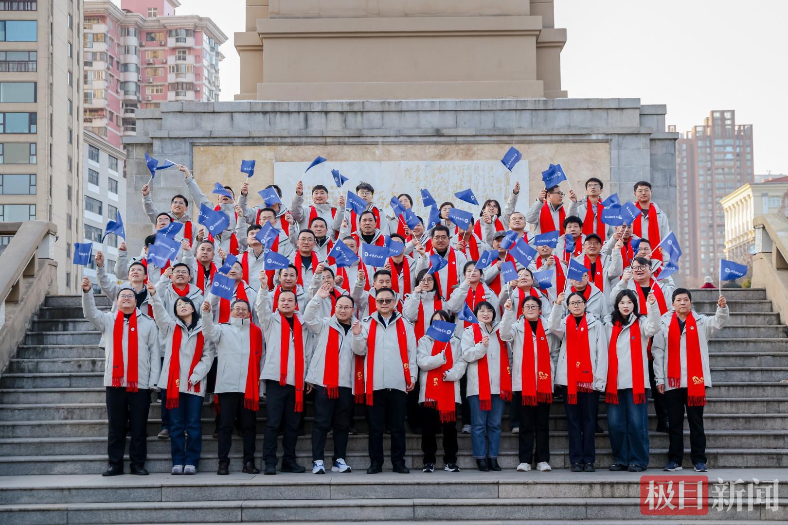 校友们在武汉防汛纪念碑前合影