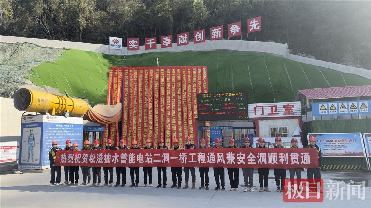 1月11日,由中建三局长江有限公司承建的国能湖北松滋抽水蓄能电站二洞一桥工程通风兼安全洞提前30天实现贯通。