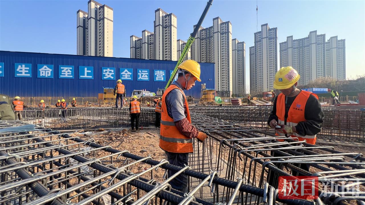 随着桩基工程的结束,下一步项目将进行冠梁支撑和主体结构施工。记者现场注意到,场地东侧冠梁就已经完工,而西南角数十名工友正在绑扎钢筋。原来,项目技术团队通过提前策划,将现场细分为8个工区,通过“穿插施工”,让工序无缝衔接,整体施工效率得到大幅提升,为后续施工打下坚实基础。