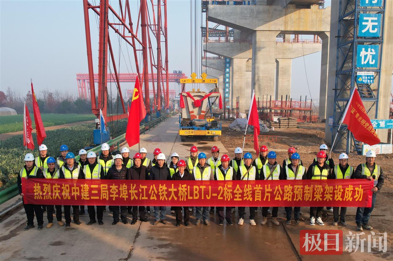 1月15日,由中建三局承建的荆州李埠长江公铁大桥LBTJ-2标段迎来重要突破——全线首片公路预制箱梁顺利完成架设。这标志着大桥建设正式转入上部结构施工阶段,为后续工程推进奠定坚实基础,也为全桥如期建成提供了有力保障。