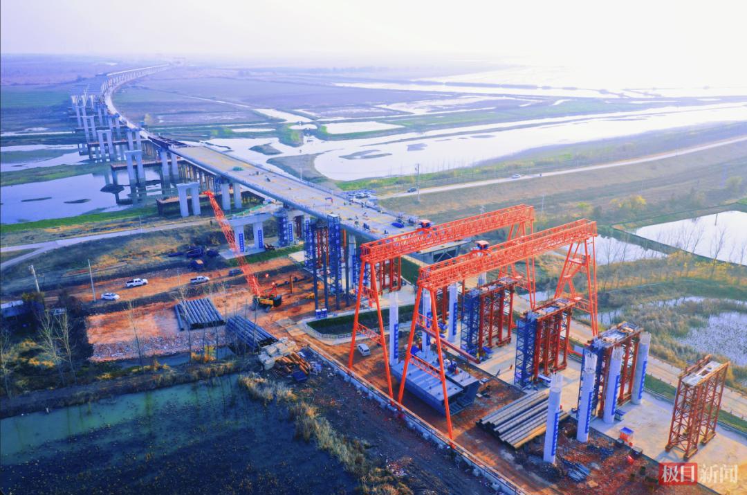 武汉都市圈环线全长约360公里,是湖北省“十四五”规划重点工程。其中蔡甸段二标项目主线全长14.16公里,是中建八局首条穿越国际湿地的高速公路。涉水桥梁占比90%,是穿越地球上同一纬度湖泊群中,唯一的典型淡水湖泊和沼泽湿地“武汉蔡甸沉湖湿地”。攻克湿地保护与工程建设双重挑战,多次获得业主与自然保护区管理局表扬。