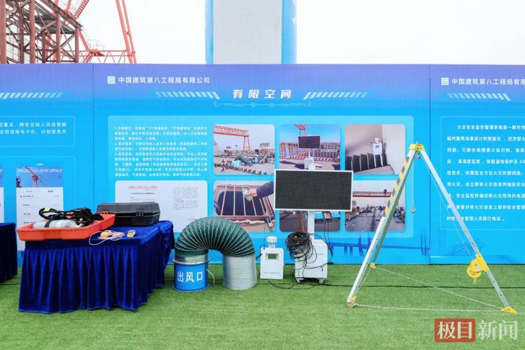 安全生产展区:聚焦安全管控标准化、风险防控智能化等领域,展示了中建智慧安全平台、无人驾驶塔吊、智能安全帽及安全带等管控措施与智能装备。其中智能安全帽能实时监测人员作业状态,为建设者提供更加智慧的安全守护。