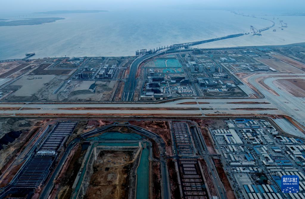施工中的厦门翔安国际机场(1月20日摄,无人机照片)。