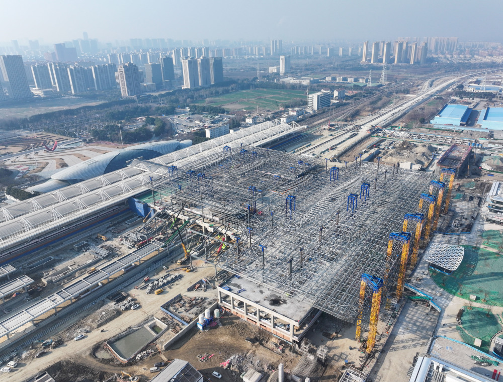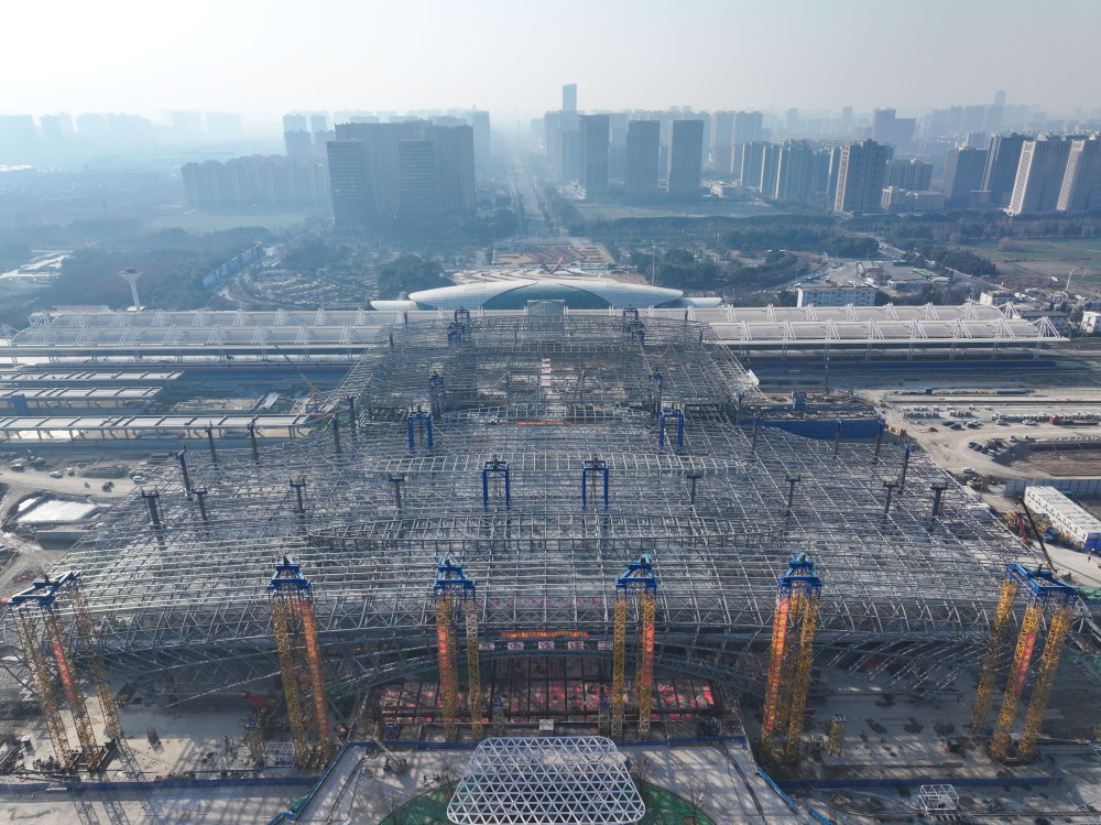 1月23日,由中铁建工承建的新建上海至南京至合肥高速铁路南通站侧式站房钢结构顺利提升至预定位置,标志着侧式站房主体结构全面完成,建设进入金属屋面、幕墙及内装修施工阶段。