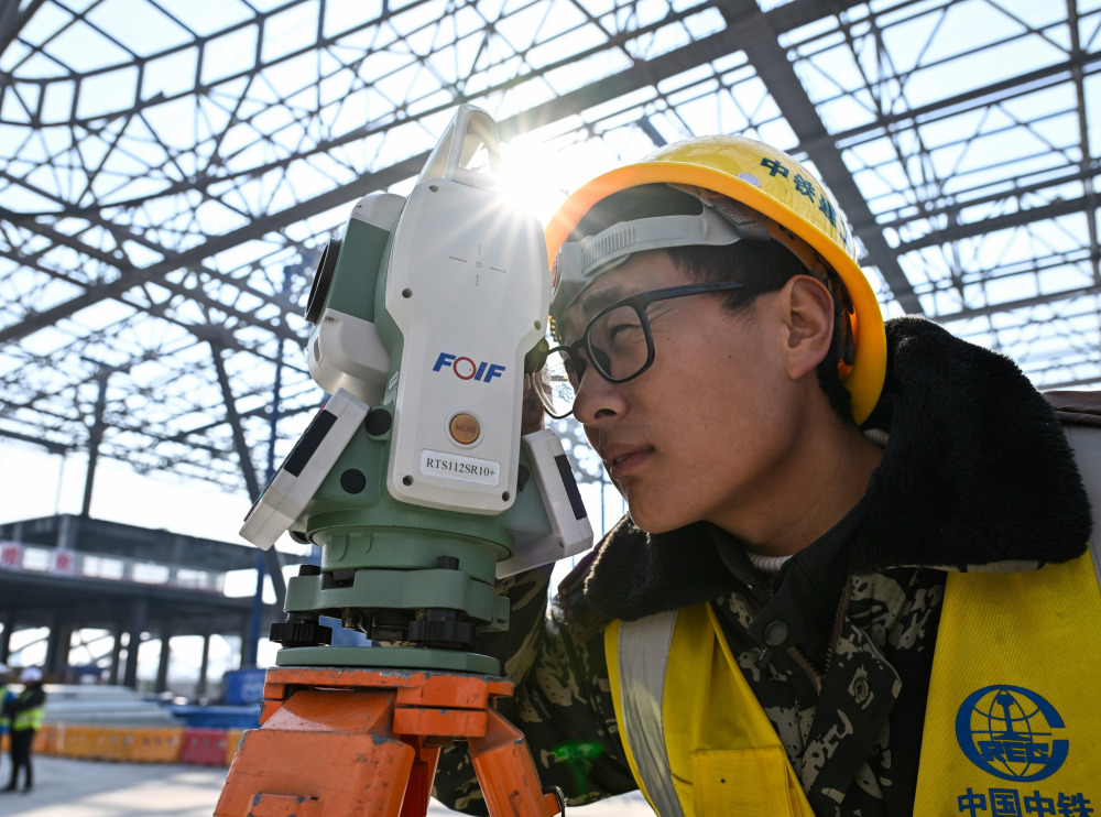 1月23日,工作人员在现场进行测量作业。新华社记者 季春鹏 摄