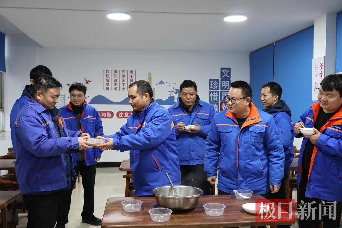 为让桥梁建设者们真切体验腊八节的民俗韵味,食堂工作人员提前备料、精心熬煮,将一碗碗食材丰富、热气腾腾的腊八粥送到每一位员工手中。粥香四溢、暖意扑面,软糯的口感伴着清甜的滋味,一口入喉,暖胃更暖心。大家围坐在一起,品美味粥食、话工作日常、聊生活趣事,现场欢声笑语不断,气氛温馨和谐、其乐融融,满是团圆的幸福感。