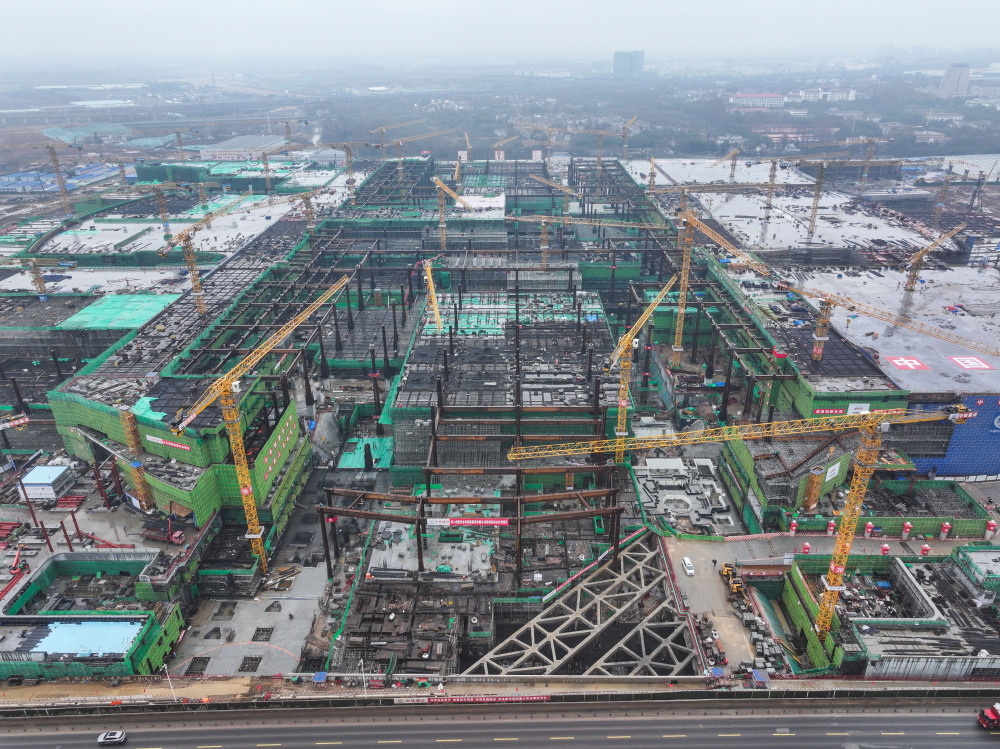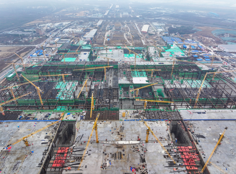 1月30日拍摄的南京北站站房建设现场(无人机照片)。新华社记者 季春鹏 摄