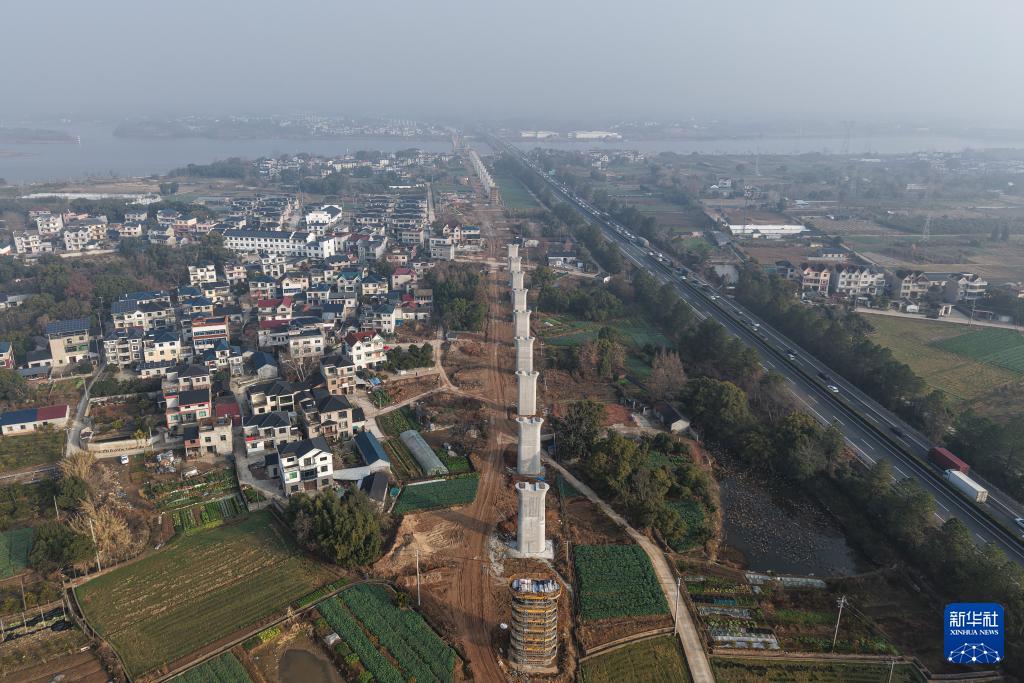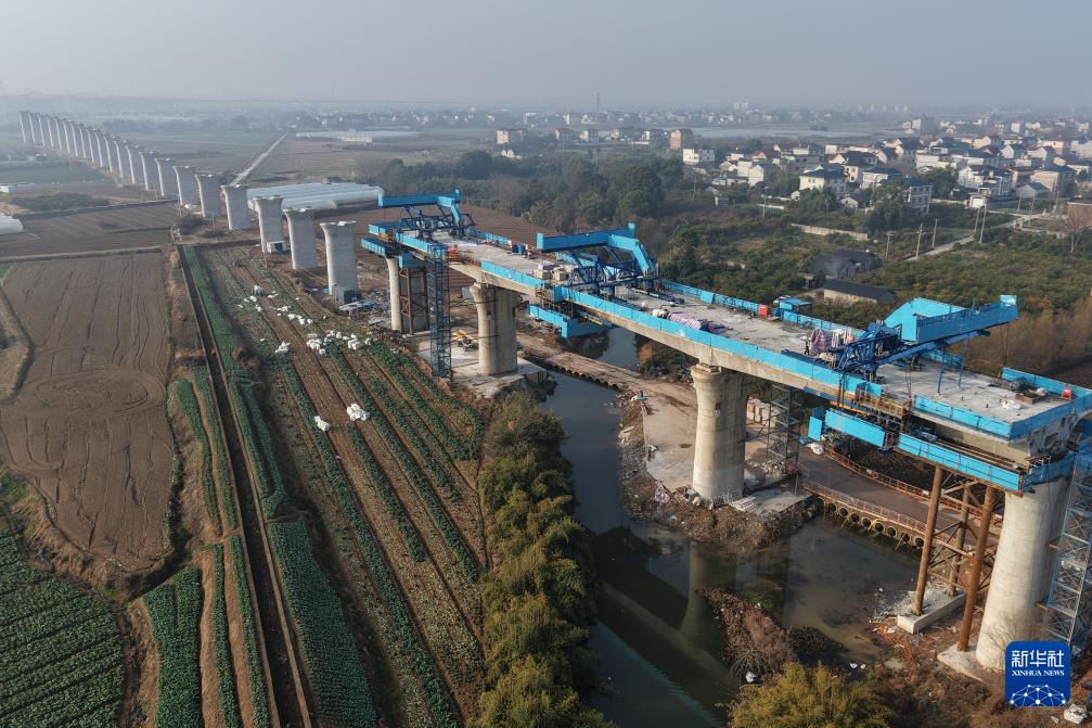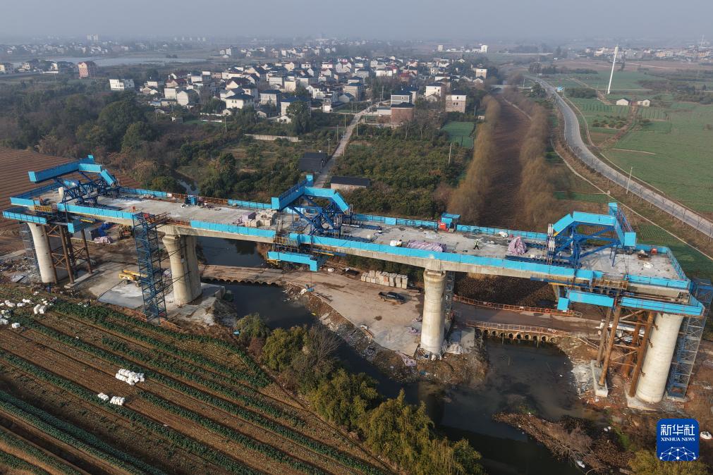 2月3日拍摄的衢丽铁路衢江特大桥跨芝溪连续梁(无人机照片)。新华社记者 黄宗治 摄