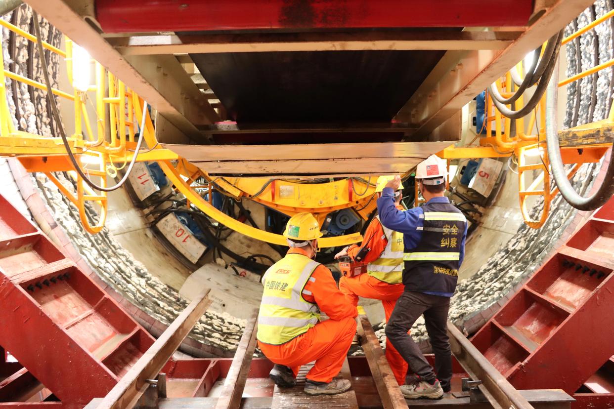 2月28日,工作人员在广东深圳西丽高铁站盾构始发现场作业。新华社发(张全新 摄)