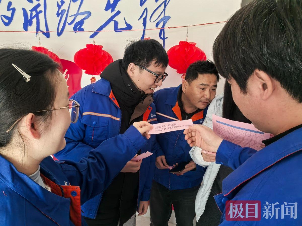 每当有人猜中谜底时,便欢笑着前往兑奖处领取实用小礼品,现场欢声笑语不断。项目部工作人员与员工们互动畅谈,叮嘱大家劳逸结合,感受团队温暖。一位员工表示:“能在项目部参加猜灯谜活动,既放松心情,又感受到浓浓节日氛围,特别有意义。”