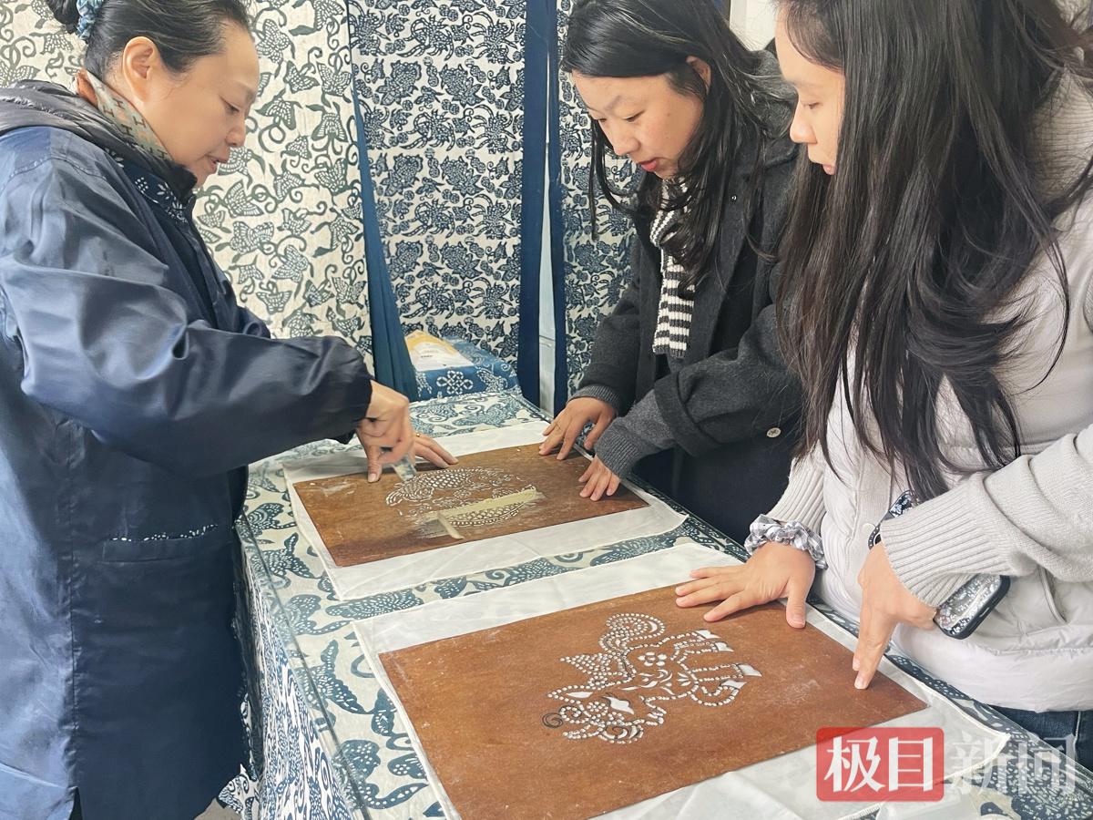女职工们体验蓝印花布