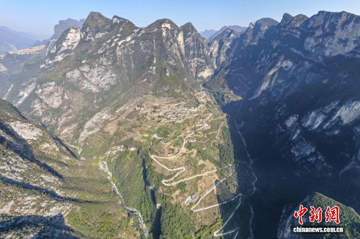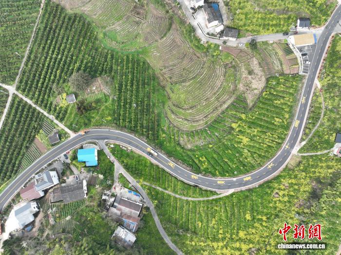 图为重庆市巫山县竹贤乡下庄村的农村公路。(无人机照片)中新网记者 何蓬磊 摄