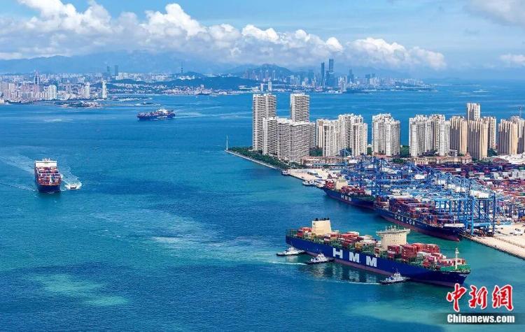 从青岛港眺望青岛东岸主城区。(无人机照片)张进刚摄
