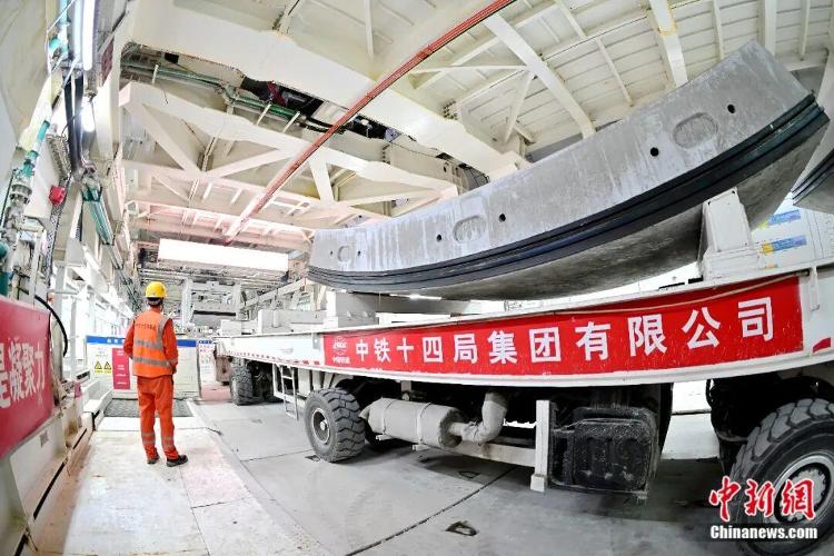 图为工人在进行隧道管片的吊运作业。张孝鹏摄