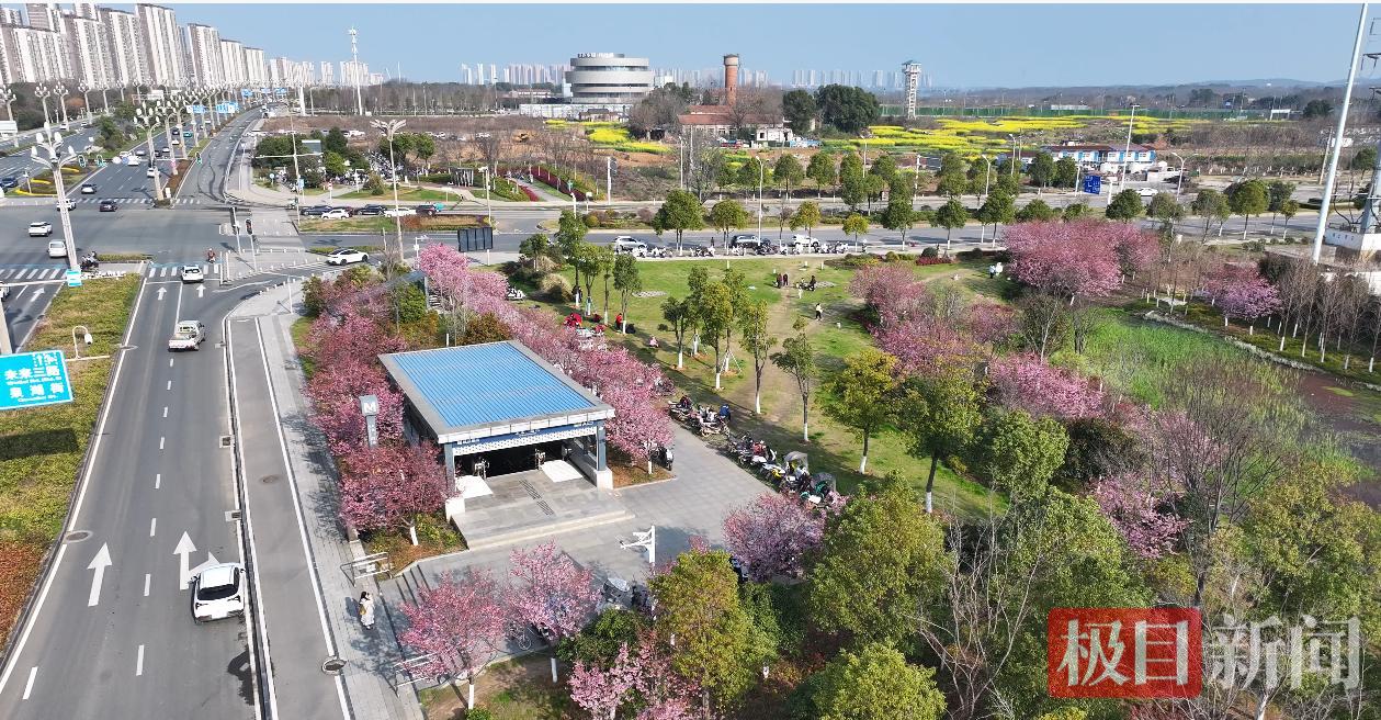 据了解,该口袋公园的樱花由光谷生态公司于2021年栽种,随着地铁11号线的通车,这里的樱花逐渐被市民知晓,“最美樱花地铁站”的名号也广为流传。目前,地铁口樱花盛开状态良好,花期预计将持续10余天,市民可乘坐地铁11号线至未来三路地铁站A出口下车,即可抵达赏樱。