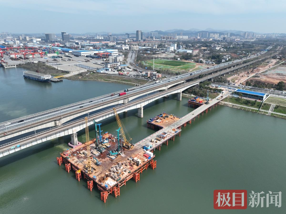 作为国家“八纵八横”高速铁路网主通道之一“渝厦通道”的重要组成部分,长赣高铁湖南段自2025年7月正式开工建设。此次施工的长沙湘江铁路特大桥主桥是长赣高铁湖南段控制性工程,全长768.1米,采用(96+93+390+93+96)米斜拉桥方案跨越湘江右汊主航道,主桥位于直线上,其左线中心与既有石长铁路二线中心水平间距仅约33.67米,施工组织难度与安全风险极高。