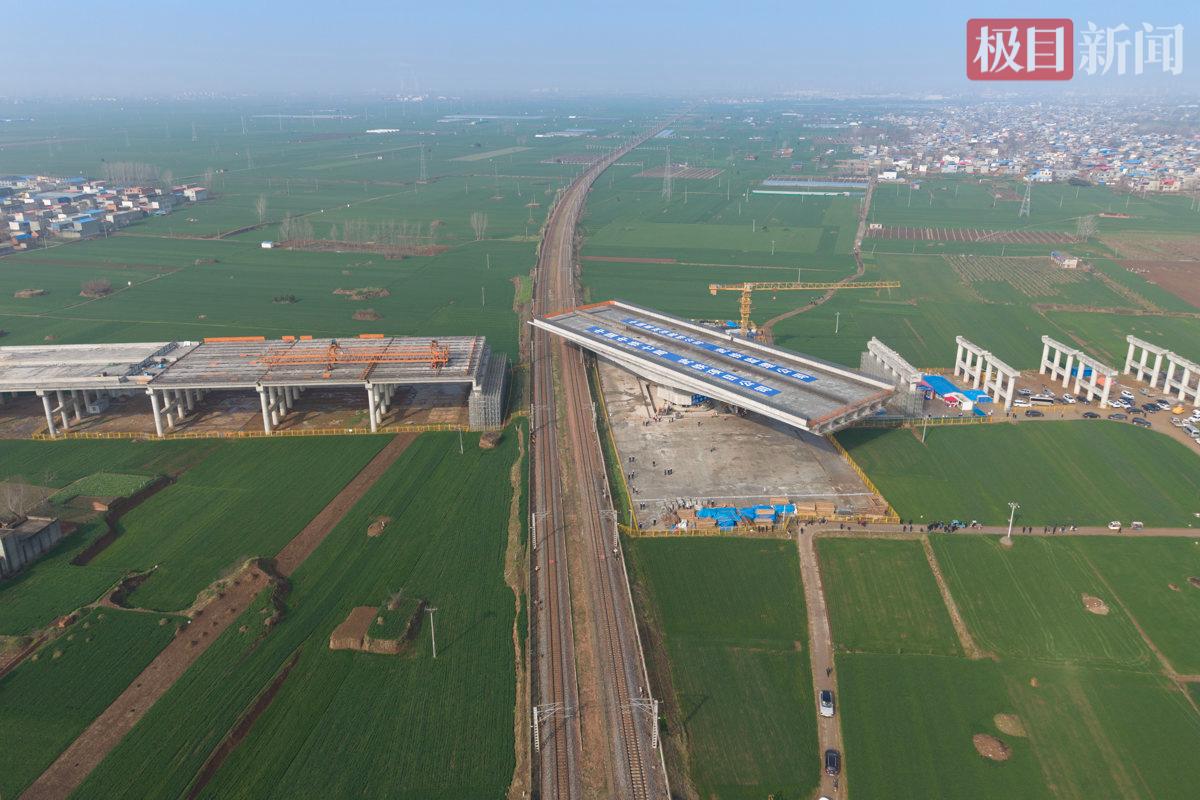 国道107京港线漯河境新建工程正是规划新建国道107河南境段的重要组成部分,路线全长约69公里,采用一级公路标准、双向6车道。此次完成转体的上跨漯阜铁路立交工程,是这条南北大通道上的关键控制性工程,桥梁全长499.44米,公路与铁路近乎正交,交角达88度。