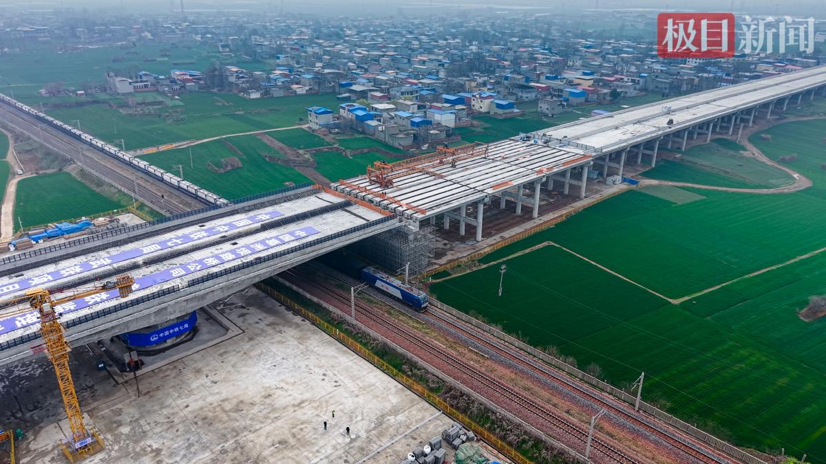 桥梁转体施工完成后首趟列车通过转体施工段