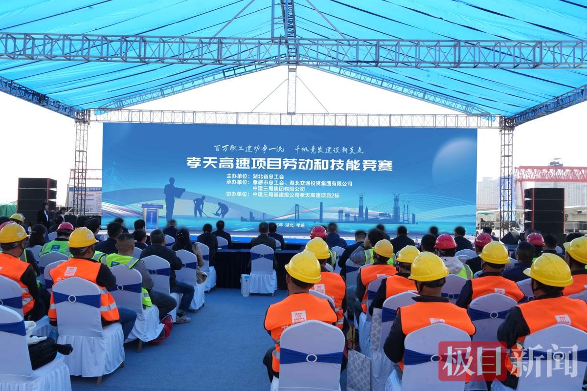 孝天高速(孝感至天河机场高速公路)项目路线起于孝感市主城区澴川路与槐荫大道交叉口,止于临空区农联村喻家咀附近,接孝汉大道童家湖特大桥北侧桥头,主线全长约28.5千米,是湖北省主动融入武汉都市圈、推动区域一体化发展的关键性工程。其中,由中建三局基建投公司负责施工标段长约10.7千米,现有产业工人超500人。项目积极响应湖北省双“百千万”劳动和技能竞赛号召,以“百万职工建功争一流 千帆竞发建设新支点”为主题,开展“六比一创”劳动竞赛。