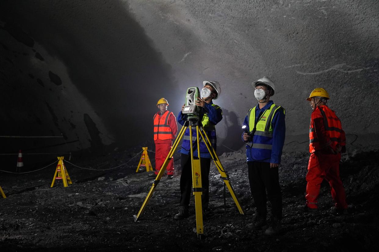 3月29日,工作人员在沪宁合高铁丰山隧道内测量。新华社记者 杜宇 摄