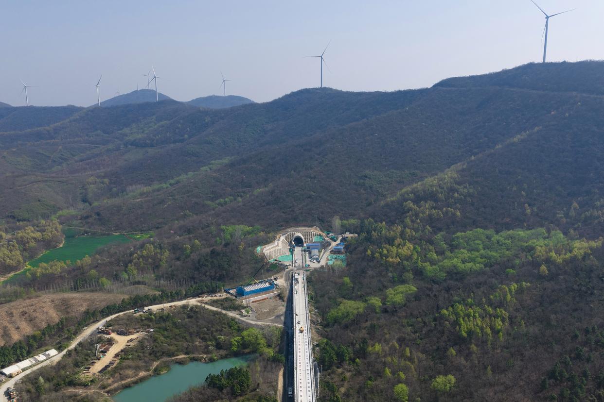 这是3月29日拍摄的沪宁合高铁丰山隧道(无人机照片)。新华社记者 杜宇 摄
