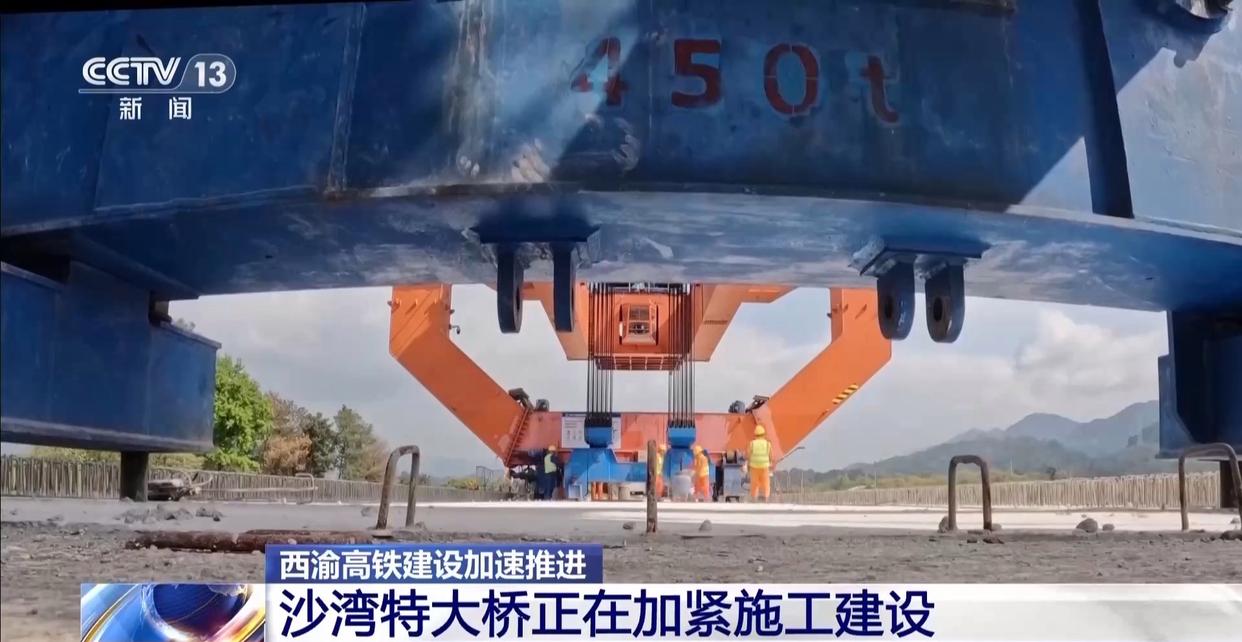 总台记者 王磊:在沙湾特大桥建设现场,这台巨大的“架桥机”正在吊装的是大桥“脊梁骨”——我们叫它预制梁。