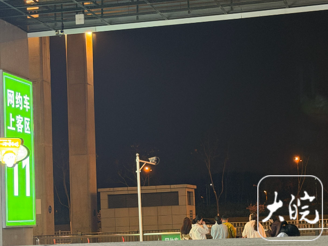 3月29日晚9点30分左右,由南京南开往六安的G7115次列车经停合肥,出站口迎来大批旅客,出站的闸机前也排起长队。跟随人流,记者按照网约车区域的指引标识一路向前,看到沿途地面也有清晰的标线。