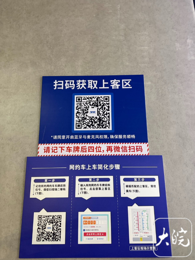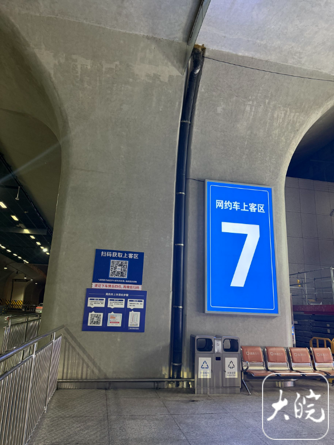 记者在现场看到,上客区场地宽敞,以颜色加数字来区分:如蓝7、绿11等,字号特别大。这种组合有什么作用?其实是人车匹配的专属“车位”。