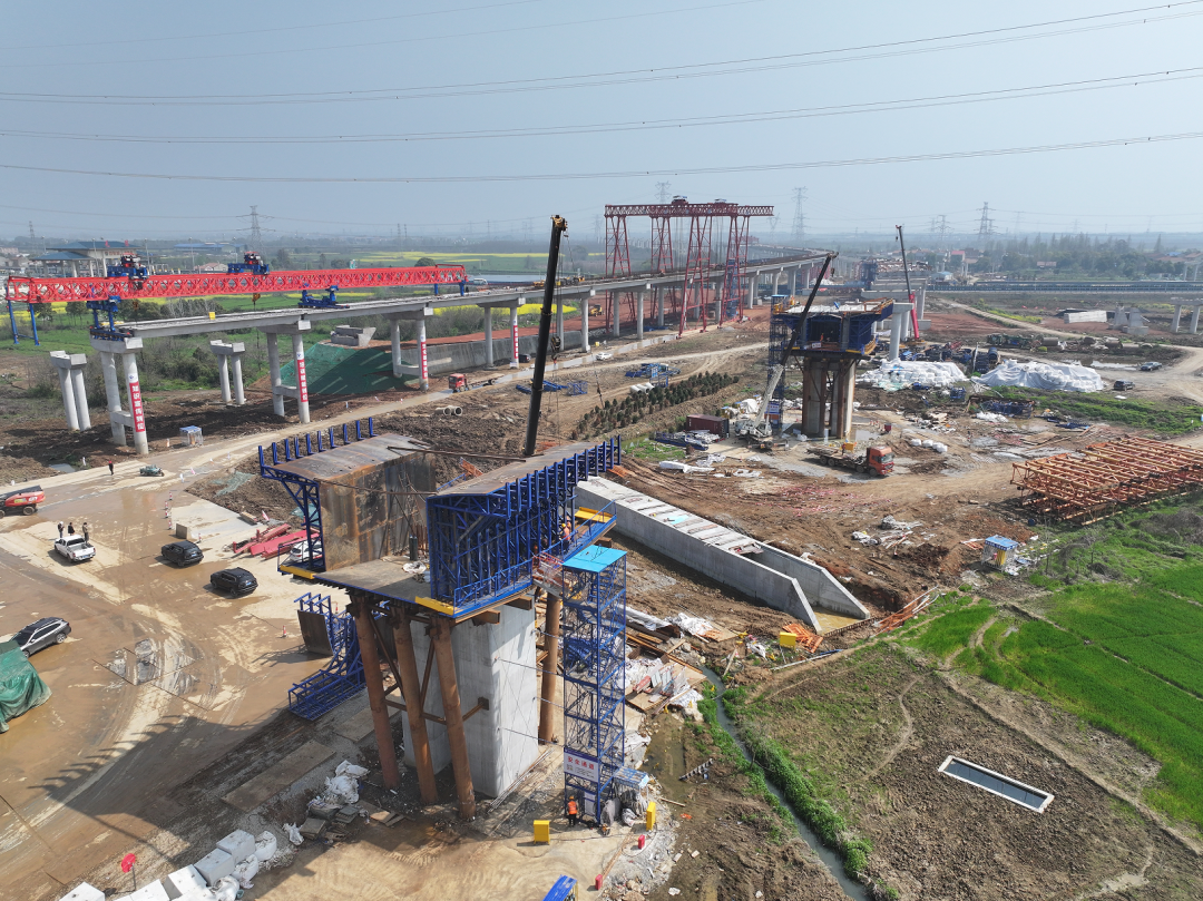 3月29日,荆楚春潮涌动,位于孝感市孝南区的硚口至孝感高速西延线一标八一特大桥施工现场,左幅28#0号块完成浇筑、即将进行挂篮作业,29#0号块正进行支架搭设与侧模安装,两项施工任务均超前完成,为标段最长大桥主线加快施工创造条件......