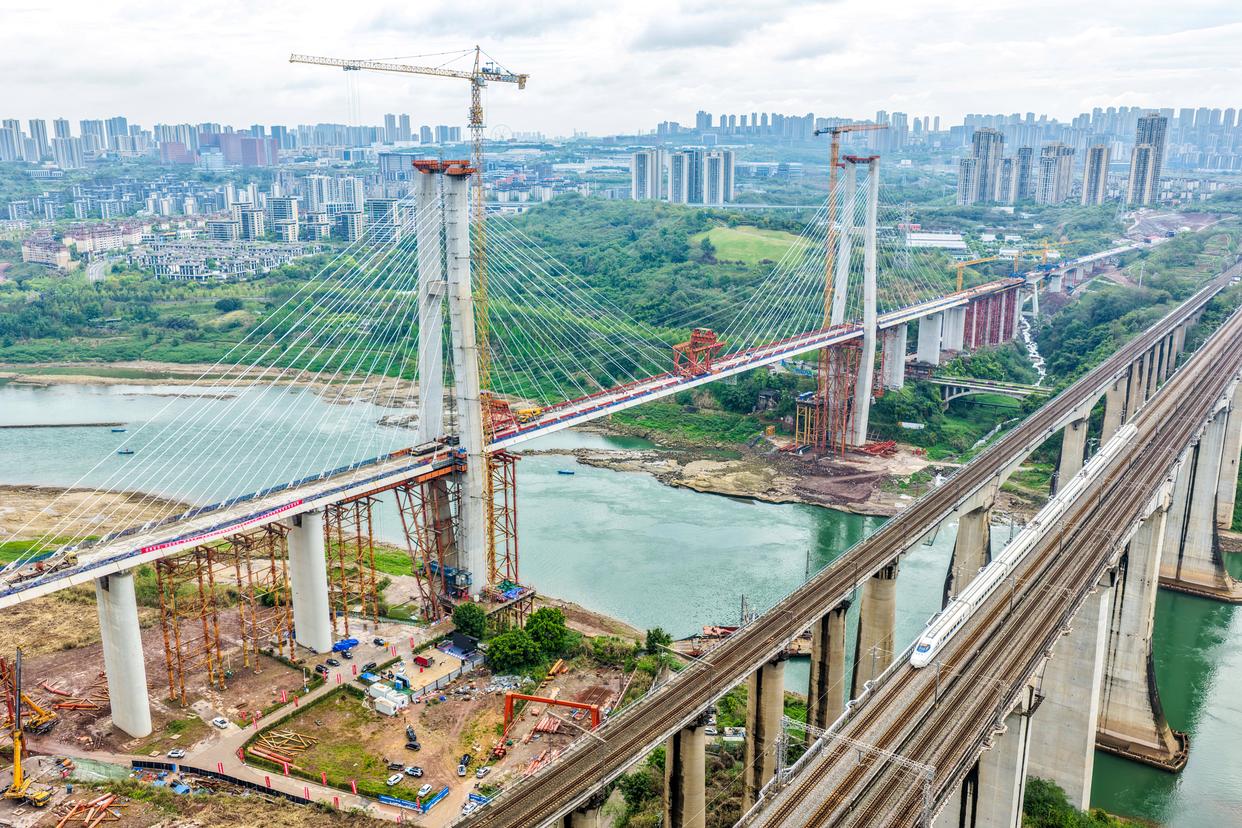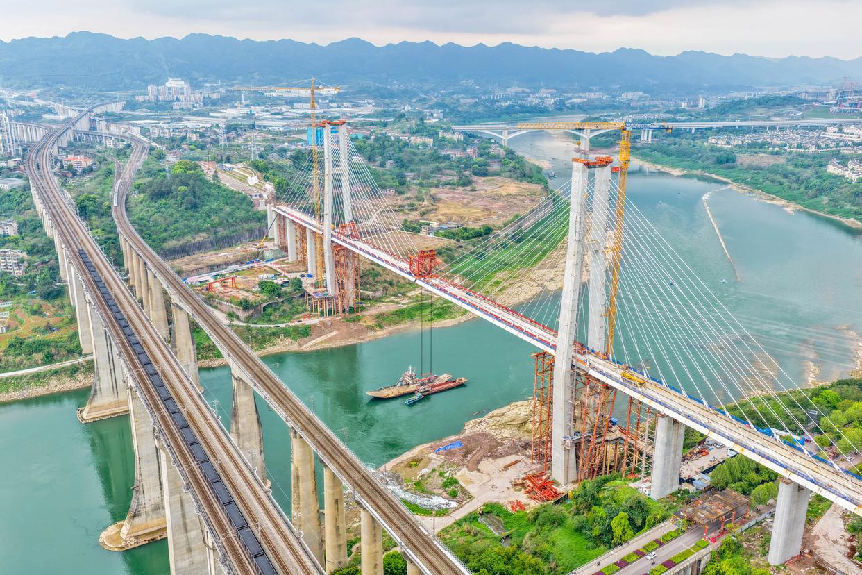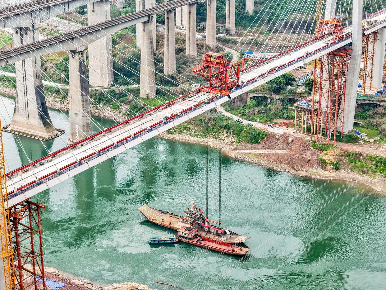 3月31日,由中铁大桥局承建的成渝中线高铁井口嘉陵江特大桥顺利合龙,标志着成渝中线高铁全线桥梁全部合龙,为按期通车奠定了坚实基础。成渝中线高铁是我国“八纵八横”高铁网沿江通道的重要组成部分,正线全长292公里。