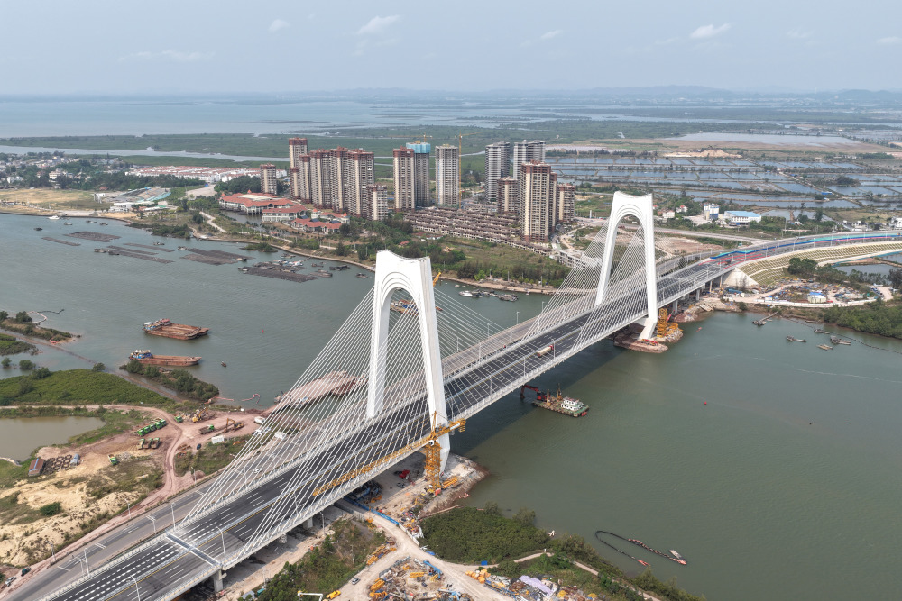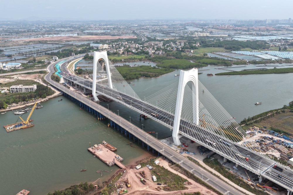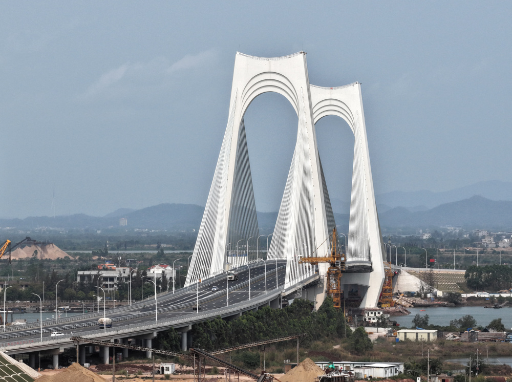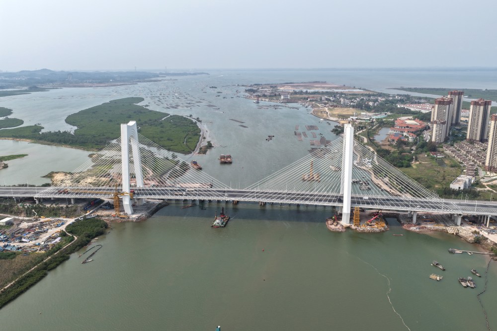 3月31日,地处钦江入海口的平陆运河沙井钦江大桥建成通车。至此,平陆运河规划的27座跨线桥梁中,已有25座桥梁建成通车,全线桥梁工程即将收官。
