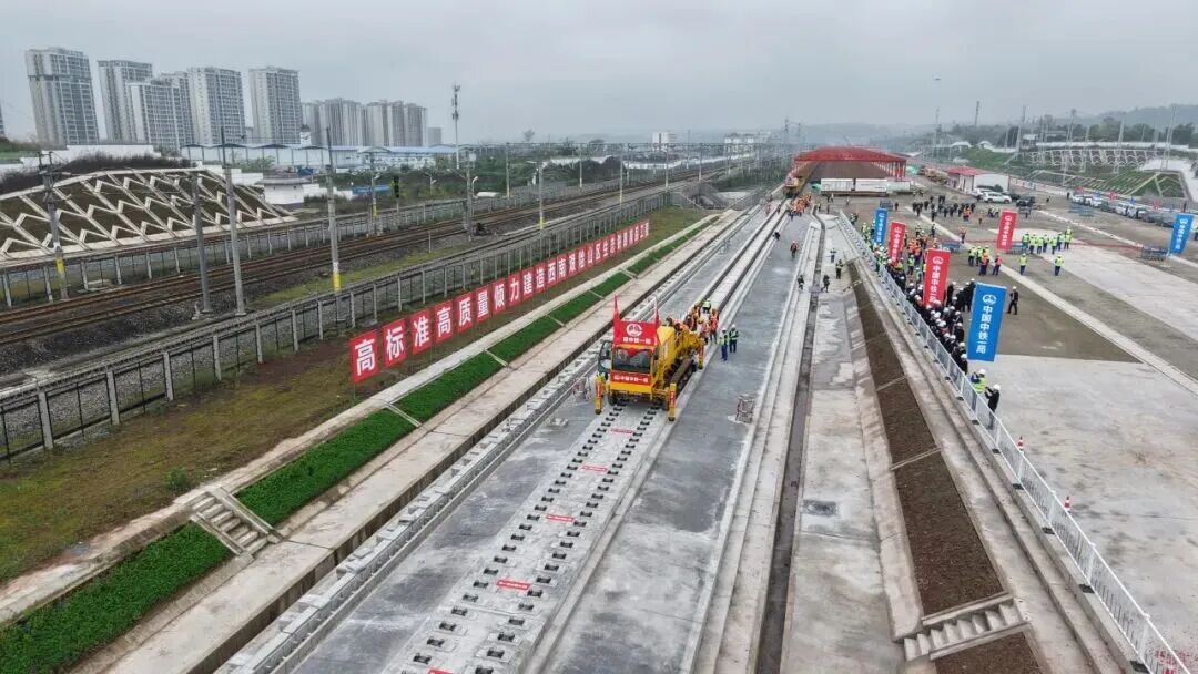 目前,渝万高铁路基、桥梁、隧道等工程已基本完成,站房及“四电”工程正按节点有序推进。铺轨节点如期兑现,标志着项目从线下工程全面转入线上施工阶段,为全线按期通车奠定坚实基础。