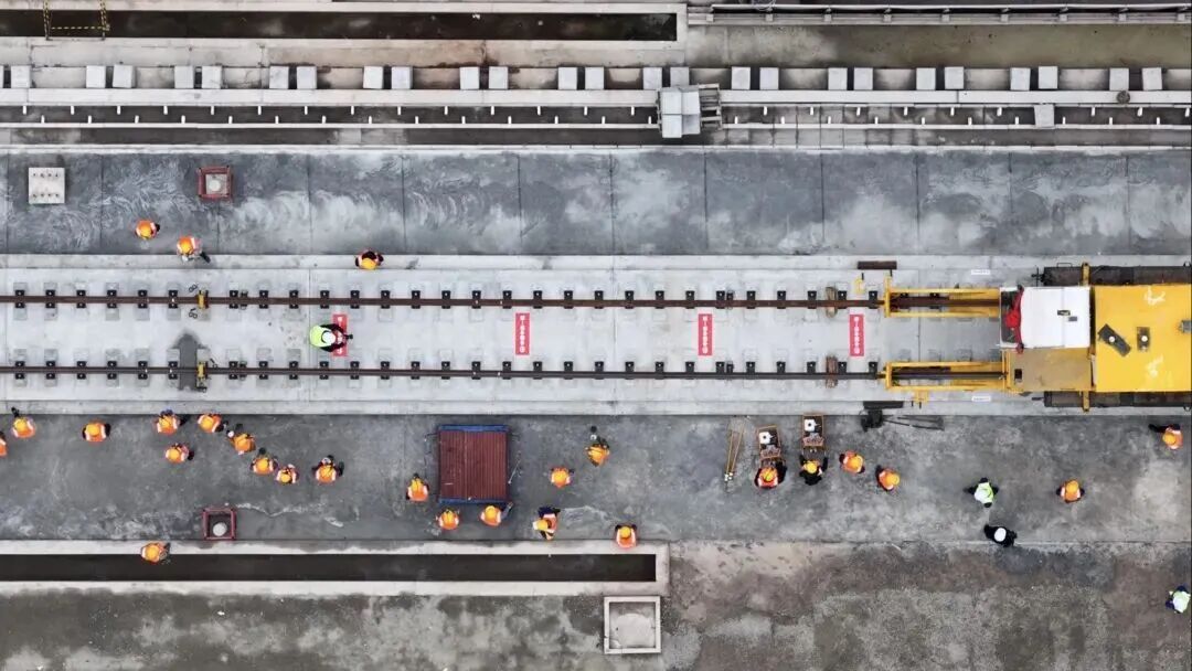 此次铺轨总里程约540公里,其中正线约520公里,站线约20公里,包含97组道岔等施工内容。