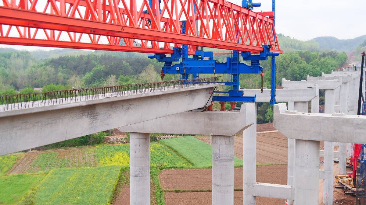 平宜高速襄阳段全长55.708千米,设置各类桥梁61座,需预制梁板4313片。首片箱梁成功架设,标志着项目桥梁下部结构与上部结构施工进入平行推进的新阶段。
