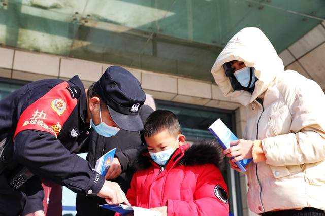 元旦当天,麻城车站派出所、麻城北车站派出所组织民警在火车站广场、候车室采用挂画、展板、宣传手册等形式向来往旅客讲述铁路安全相关的法律法规、爱路护路安全知识、防疫卫士知识、冬季消防安全知识等,并提醒旅客在车站、列车上遇到任何困难、问题和疑问时,不要轻信陌生人,应找铁路公安民警或工作人员寻求帮助解决。