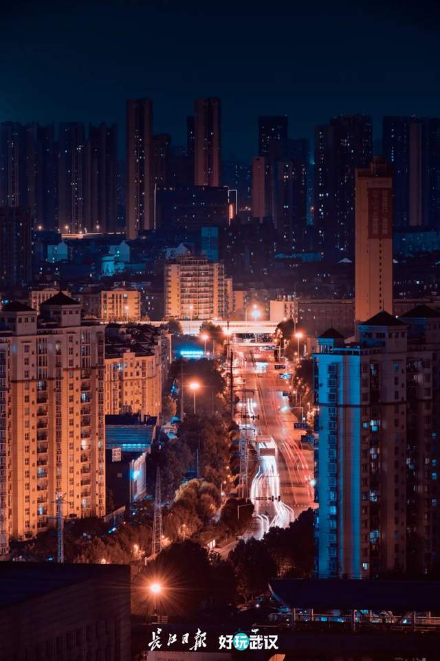 2020年6月4日,武汉后湖大道,街道上恢复了热闹,车灯、霓虹幻化成光轨,这是我熟悉的武汉。