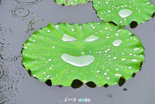 2020年6月,小南湖,雨中荷叶的“浪漫之笑”使人过目难忘。