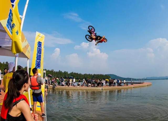 2020年8月22日,武汉东湖帆船基地“东湖造浪节”现场,用超广角镜头,将骑手横空出世的精彩和观众惊呼的画面定格。
