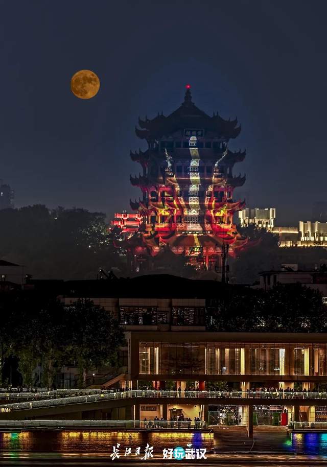2020年国庆节,皎洁的明月挂在天空,“夜上黄鹤楼”表演将荆楚故事用光影投射在楼体,黄鹤楼如同披上了宝石镶嵌的衣衫,美轮美奂。