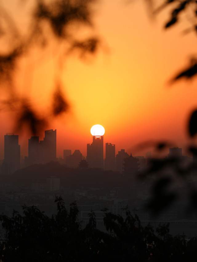 在龟山公园的龟山电视塔下,摄影师“山大王”找到一个拍日出的机位,清晨天气晴朗,能见度极好,他连续按快门,拍下一组日出照。