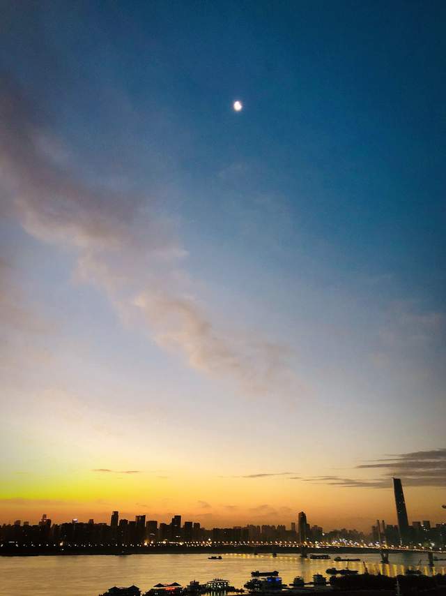 太阳未升,月亮高悬。城市摄影队 极简生活 摄