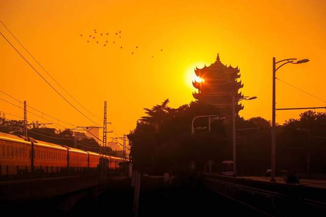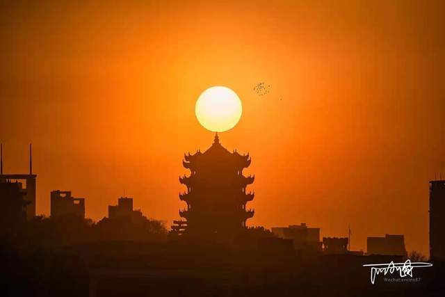 黄鹤楼上悬日。城市摄影队 何小囧 摄