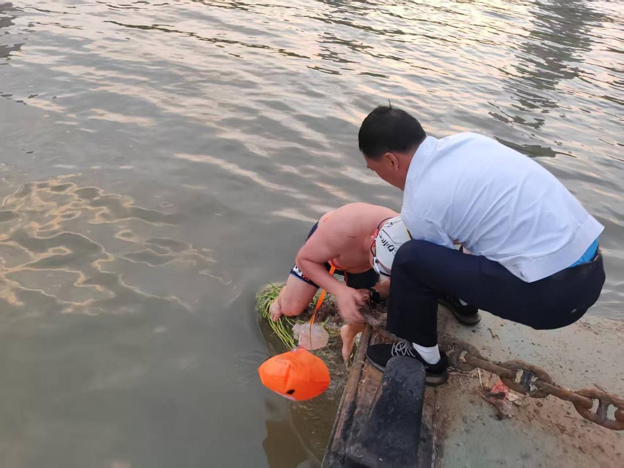 2025年6月12日傍晚,在武汉粤汉码头水域上演了一场生命救援。武汉文旅集团两江游览公司“两江晴川”游船船长黄洪峰成功救起一名因游泳时间过长体力严重透支、被困在一号趸船锚链上的游泳爱好者。