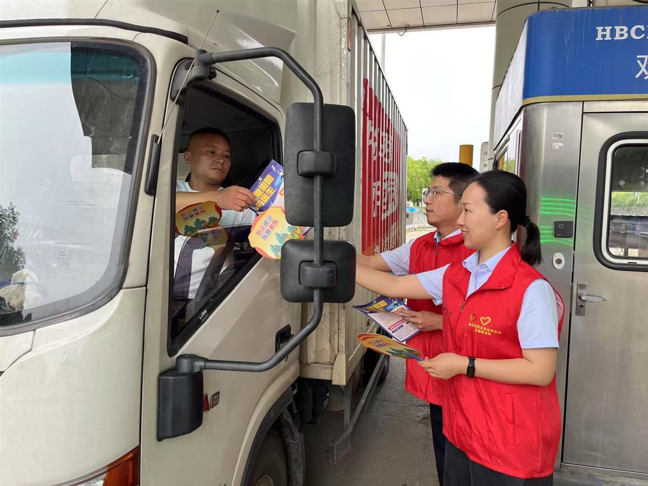 与线上直播同步进行的,是设在京港澳高速收费站广场的“安全宣传咨询台”。这里成了传递安全知识的“前沿阵地”。收费员化身“安全宣传员”,利用车辆缴费通行的间隙,见缝插针地向过往司乘人员发放《高速公路安全行车手册》、《应急处置指南》等宣传资料,并热情解答咨询。