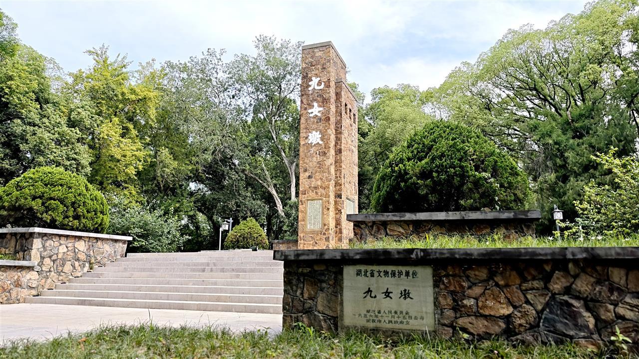 九女墩始建于1952年,是为纪念1855年太平军中九位女英雄而建的革命纪念设施。碑体由石块砌筑而成,顶部悬铜铃,正面镌刻董必武亲撰的《九女墩记》,碑阴及两侧则留存宋庆龄、郭沫若、何香凝等历史名人题词。作为东湖风景区核心人文地标,九女墩不仅见证了近代中国妇女解放运动的壮阔历程,更承载着深远的爱国主义教育意义。历经七十余载风雨,其文物保护状况始终牵动社会各界关注。