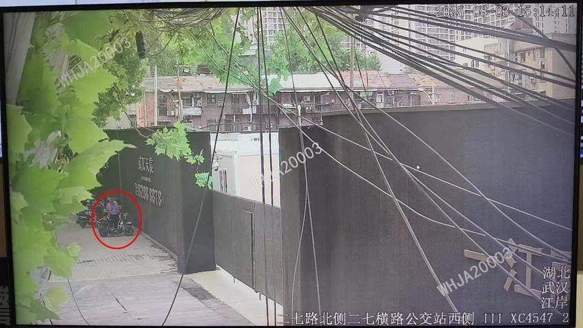 8月3日20时30分,李女士焦急地来到武汉市公安局江岸区分局新村街派出所报警称:丈夫停放在二七横路67号对面工地门口价值3000余元的电动自行车被盗。民警李召带领辅警齐飞立即开展调查。