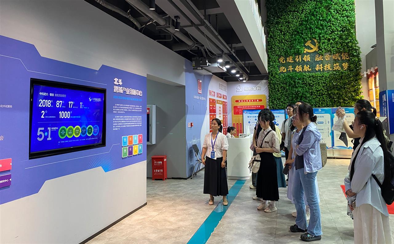 青年学子深度探访了北斗科技园、碳汇大厦、鄂港澳青创园等武昌科创地标。在华中地区首个以“北斗”命名的科技园区,学子们走进重点企业开普勒卫星科技(武汉)有限公司,近距离感受北斗技术在武昌“产学研用”深度融合的丰硕成果,以及其立足武昌、辐射全国的影响力。走进碳汇大厦,学子们深度了解了全国碳排放权注册登记机构(中碳登)如何作为国家“碳资产大脑”和“碳交易枢纽”,护航全球最大碳市场的平稳运行。同时,切身感受到武昌区以绿色低碳转型引领高质量发展的创新探索与实践。在鄂港澳青创园,学子们通过参观展厅、观看宣传片、走访共享办公区与温馨的“青春学习小站”,全面了解了园区在汇聚港澳及内地青年创新创业方面的突出成果和独特优势,深刻体会到武昌这片热土对青年创客的包容态度与强大赋能。